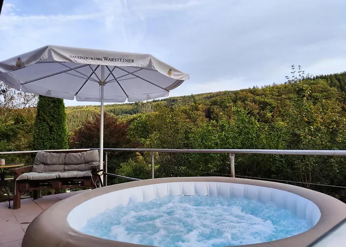 الضيوف يمكنهم ايضاً تحضير الطعام في منطقة المطبخ الصغير المجهز. مطار كولونيا بون الدولي على بعد حوالي 95 كم من المكان. فيلا Wohlfuhloase Eifelsteig تتميز بـالشرفة متوفرة لراحة الضيوف. المكان يمتلك الحوض الساخن ومنطقة التشمُّس والتراس للتشمُّس لوقت الترفيه.